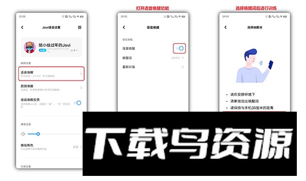 进入设置中的Jovi语音选项,开启语音唤醒功能,选择并训练唤醒词;设置成功后,直接对手机说出唤醒词即可召唤助手。