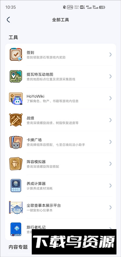 4.应用内还提供了多种实用游戏工具,例如每日签到、互动地图以及角色养成计算器等;