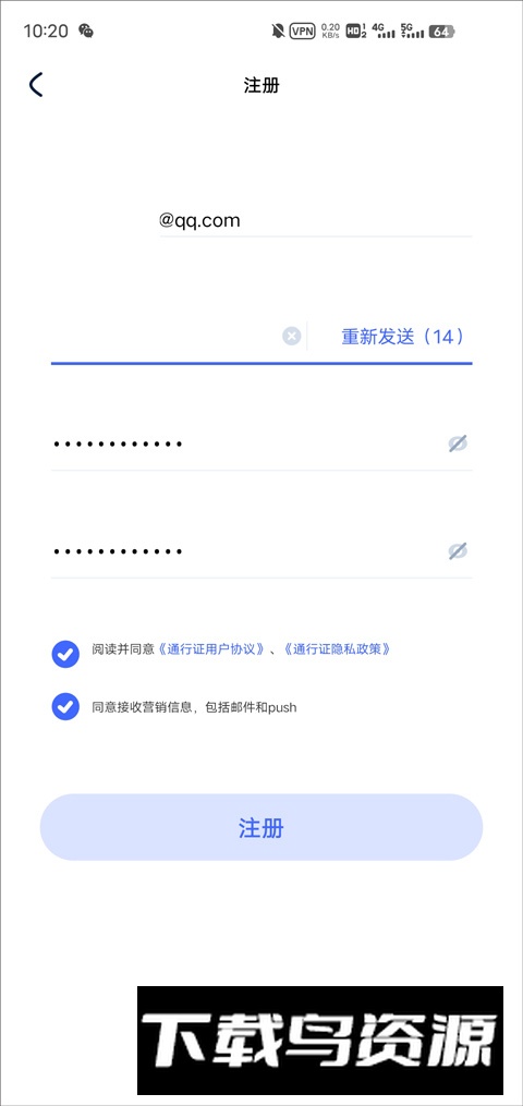 2.依次输入邮箱地址、设置密码,并获取验证码完成注册步骤;