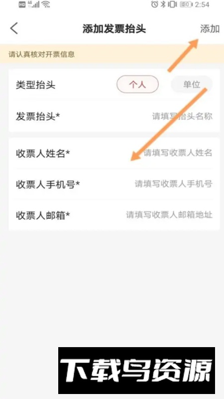 5、输入发票抬头信息,点击添加,即可在相关订单中开具电子发票。