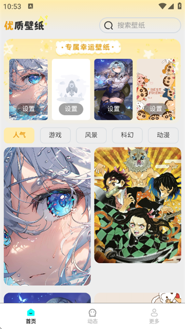 2、打开应用进入首页,这里会展示动态和静态两种类型的壁纸。
