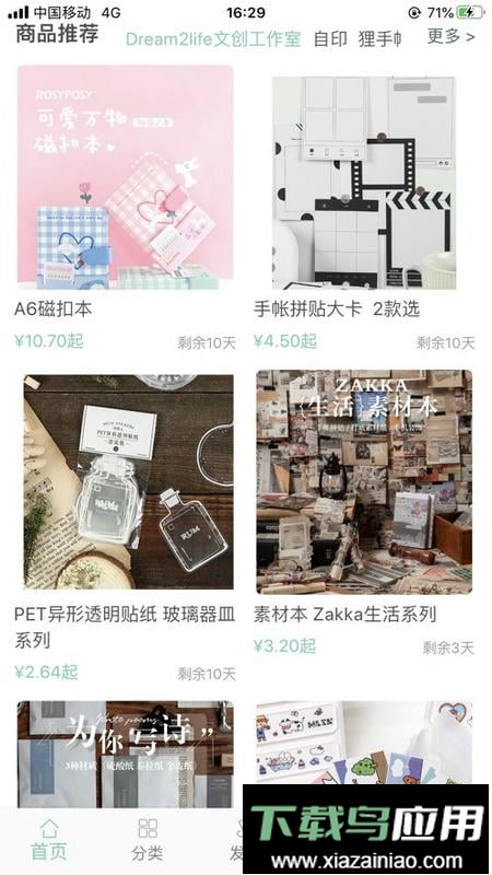 1、拼团购物。商品种类多样,主要以社团胶带和贴纸为核心,也包括垫板、明信片等周边产品。