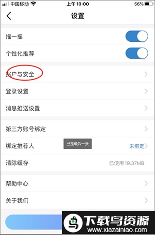 4、在设置菜单中点击“账户与安全”选项,进入相关安全设置页面;