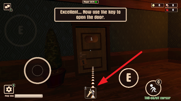 2、拿到钥匙后,跟随提示来到标有数字1的第一个房间门前。