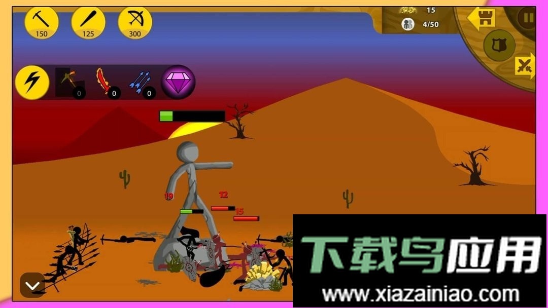 游戏将玩家带入一个激烈刺激的火柴人战场,你需要亲自指挥火柴人勇士参与战斗。游戏中可以训练多种独特的火柴人士兵,组建起专属的战斗小队,并带领他们投身于各式战役之中。唯有依靠灵活多变的操作与策略,才能成功击败战场上出现的各类敌人。