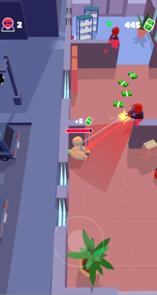 2、通过点击屏幕控制角色移动,悄悄接近并解决敌人。一旦暴露行踪,便会遭到敌人的攻击。