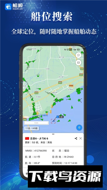 船顺是专业的船舶定位服务工具,为用户提供船舶搜索、筛选、全球AIS位置查询、历史轨迹查看、电子围栏报警等一系列功能。