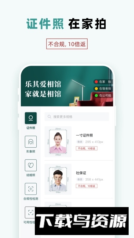 乐其爱相馆证件照app手机版客户端让拍摄证件照变得轻松便捷,无需专门前往照相馆,在家或办公室就能随时完成。这款应用覆盖了社保照、入学照、形象照等多种照片类型,一寸和二寸等常用尺寸也都齐全,手机直接操作省时省力。如果你正好需要拍证件照,喜欢的不妨在本站下载。