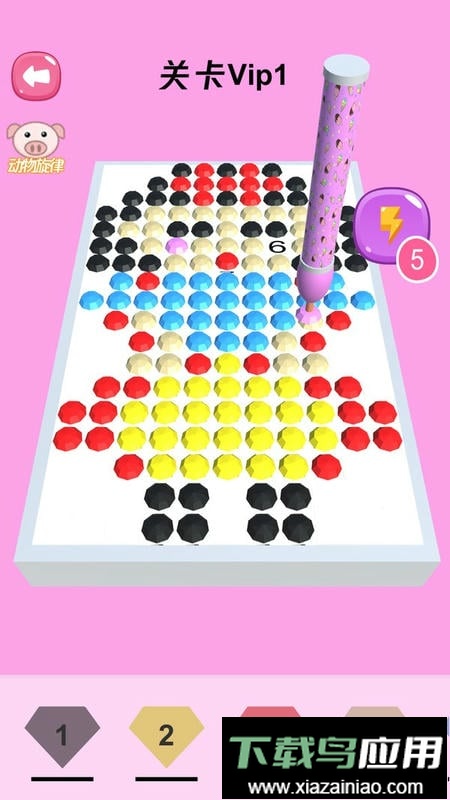 游戏通过3D技术模拟真实的钻石画镶钻流程,提供多张不同风格的图案供小朋友粘贴;每张钻石画都标有数字符号,孩子只需根据数字将镶钻笔移动到对应单元格上方,即可自动完成镶钻操作;镶钻时清脆的音效特别解压,完成后闪闪发亮的作品还能快速分享给好朋友。