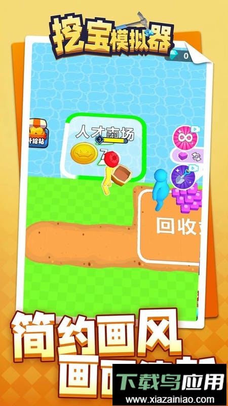 挖宝模拟器是一款经营模拟类手游,采用极简卡通画风,营造出轻松休闲的游戏氛围。玩家将扮演矿工,通过挖掘地下的矿石与古董来换取资金,并利用金币解锁新装备、开拓新地图,还能雇佣更多员工协助开采,逐步扩大自己的挖宝事业。