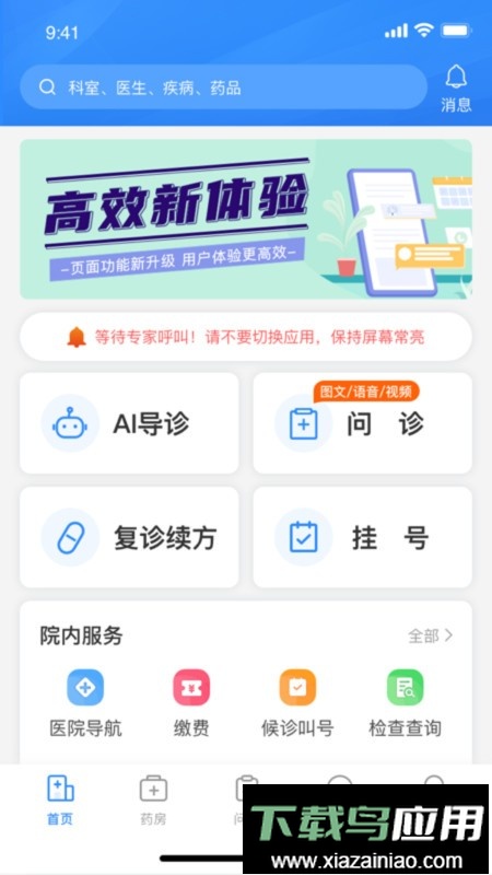 该应用融合了现代互联网与移动通信技术,结合云计算、大数据与人工智能的实践应用,有效整合了医院与专家资源;旨在切实解决用户看病难、寻找专家诊疗更费周折的现实困境。