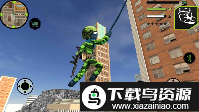 在这款军事风格的火柴人动作游戏中,玩家将扮演一名身着迷彩服的士兵,利用灵活的绳索在城市高楼间飞速移动,你的任务是打击各类犯罪活动,维护都市秩序。游戏中传统的载具被替换为威猛的军用吉普,为你带来全新的战斗感受,如果喜欢这种紧张刺激的冒险,就在本站下载体验吧。