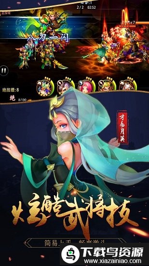 这款游戏以穿越结合三国题材为框架,采用即时回合制RPG模式,并加入了独特的连招体系;玩家可以自由调整出战武将、更换装备与武器,更能依据战术组合武将技能与绝技。在两军交锋之时,你将亲身体验掌控全局、运筹帷幄的畅快感受。