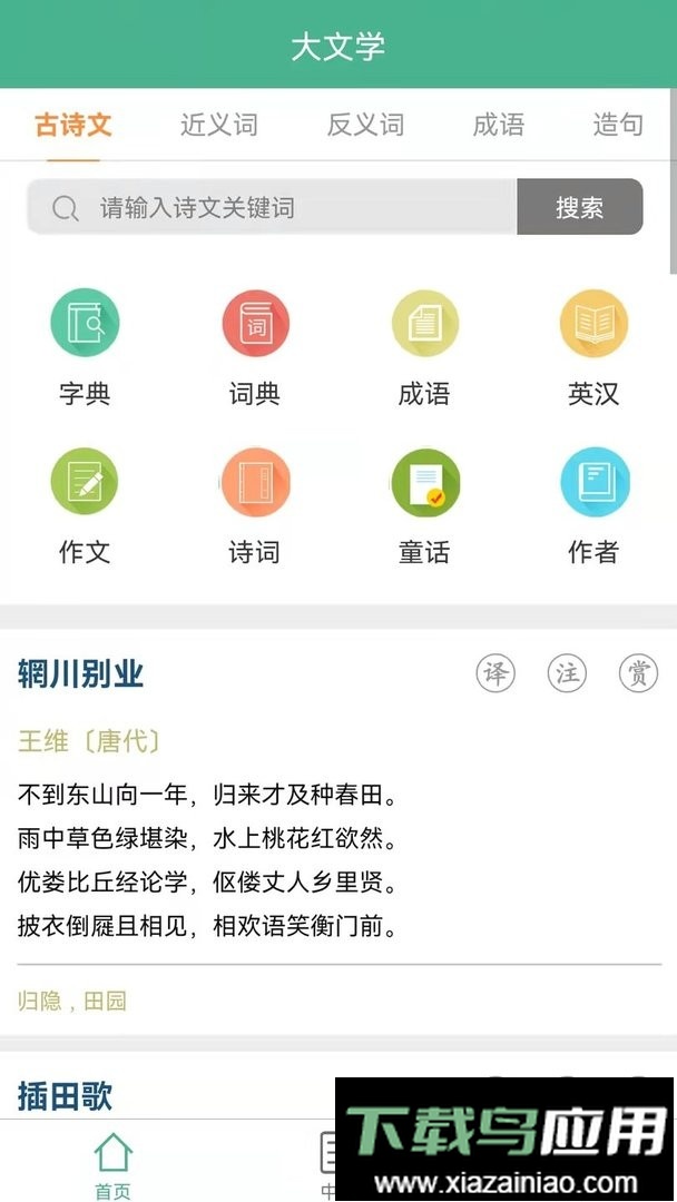 该应用提供汉字查询、字典工具,包括新华字典与康熙字典;拥有词语、汉语词典、英语词典、国语词典及成语词典等多种释义资源;收录了丰富的唐诗、宋词、元曲及文言文作品。