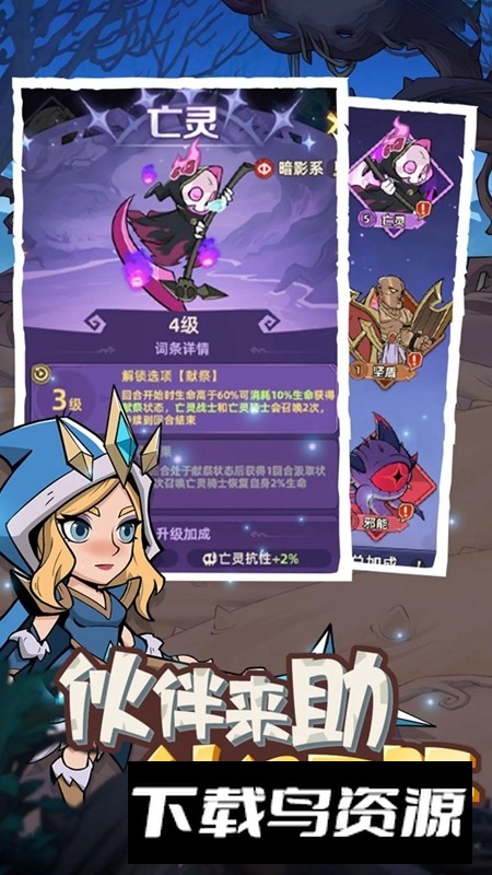 2.恶魔卡牌系统独特:每位角色都拥有一张专属恶魔卡牌,升级卡牌可直接增强角色属性;若对当前角色不满意,还可分解卡牌回收资源,为阵容调整提供了策略空间。