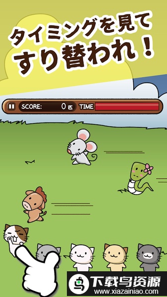 操作方式十分简单,当其他生肖动物路过时,点击对应位置的猫咪即可将其撞开;成功顶替对方后,就能悄悄占据其生肖位置;注意不要撞空,否则会减少可用的任务时间。