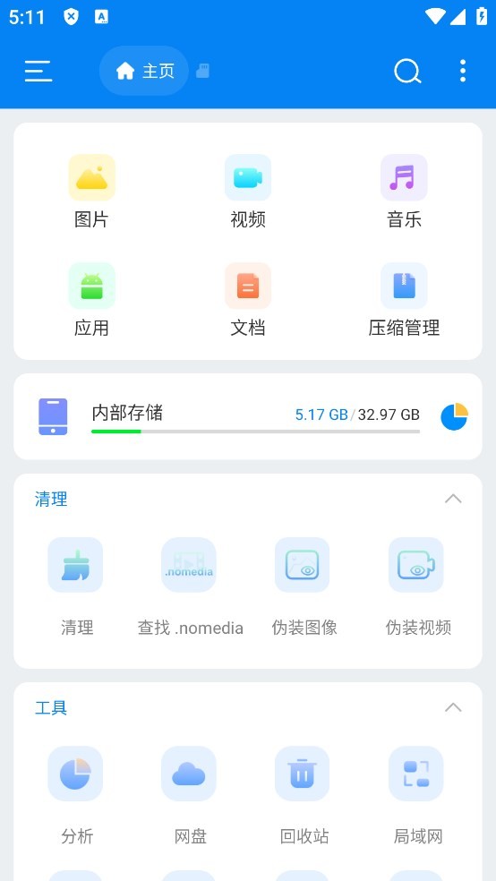 4. 提供存储空间分析,快速了解设备及存储卡的使用状况。