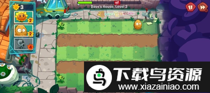 2、进入游戏后会经历一段剧情引导,随后呈现熟悉的场景,成排的僵尸将被割草机清理,接着正式关卡开始。