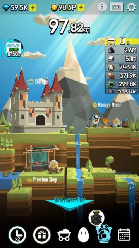 1、属于轻松简单的放置类挖地游戏,玩家可挖掘各类珍贵矿物;