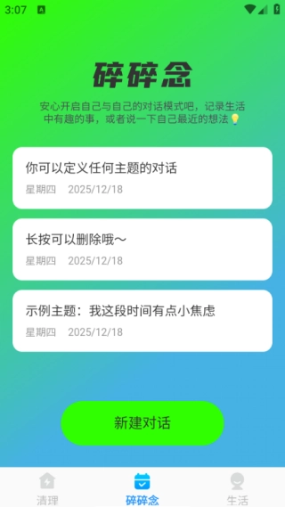 2、软件还提供“碎碎念”趣味功能,开启对话模式可记录日常趣事。