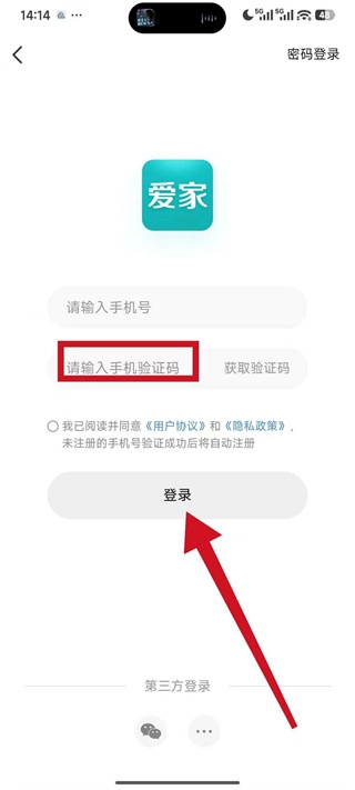4、将收到的短信验证码填入手机验证码框,勾选协议后,点击登录,完成账号登录。