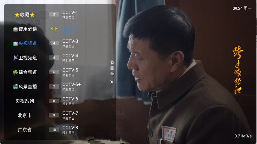 进入首页后,左侧栏里汇聚了众多电视频道,涵盖央视、卫视以及地方频道等各类频道。