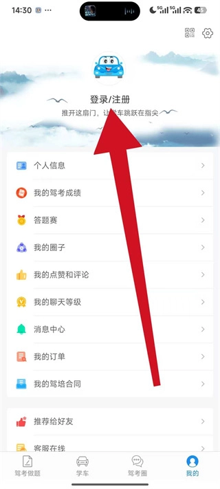 3、在我的页面上方,点击登录注册区域,进入登录选择页面。