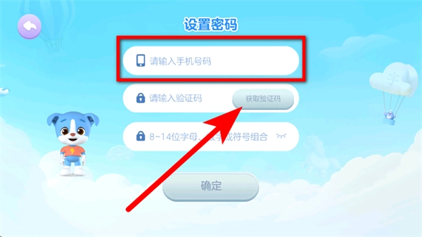 3、在设置密码页面,输入手机号码,点击获取验证码。