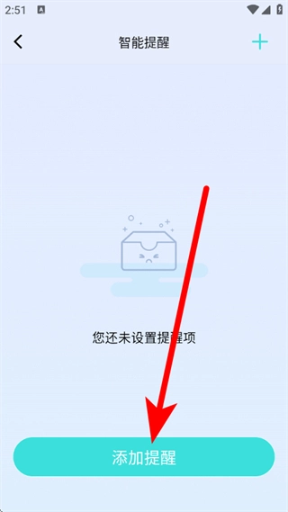 3、在智能提醒页面,点击添加提醒,进入添加时间页面。