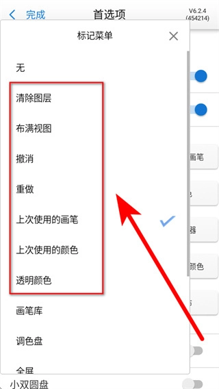 4、在标记菜单设置界面中,勾选需要添加到标记菜单的功能选项,即可完成标记菜单的自定义配置。