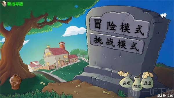 进入《植物大战僵尸新指导版》后,首先点击“冒险模式”按钮,即可开始闯关流程。