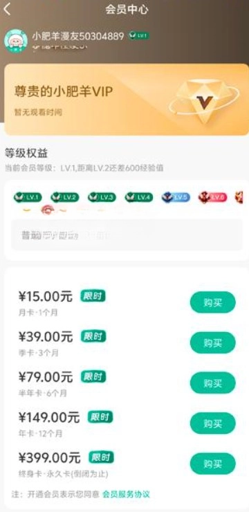 3、浏览可选的会员套餐,挑选合适的类型后点击购买,支付完成就能享受会员专属权益。