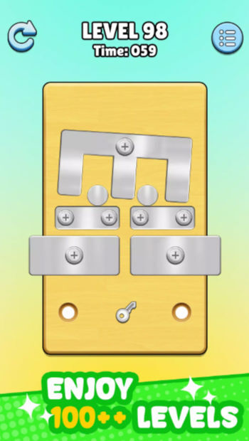 《螺丝大师别针拼图》是一款十分有趣的益智类游戏。游戏里有大量螺丝,每个螺丝上都固定着不同样式的别针。游戏开始时,屏幕上方会展示出各种拼图图案,玩家需要快速地将这些螺丝与别针按照指定图形拼接完成,才能赢得游戏胜利。