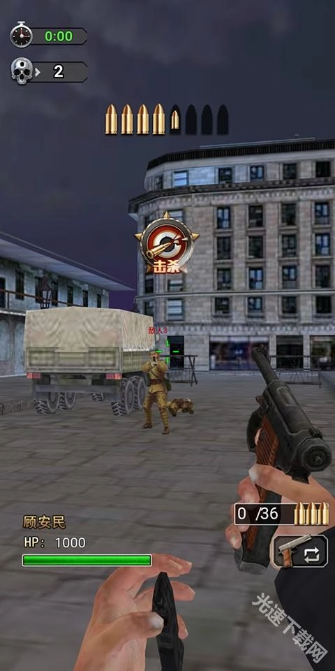 3、拥有趁手的武器后,就能投入战斗了,拖动准星对准敌人就能开火射击。