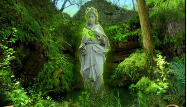 4、在场景4中,将绿色心形宝石放入雕像,按下按钮,季节转换为春天。