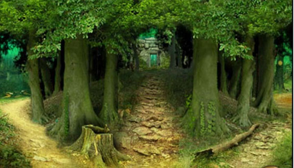 3、返回起点,进入森林,此时画面美轮美奂。
