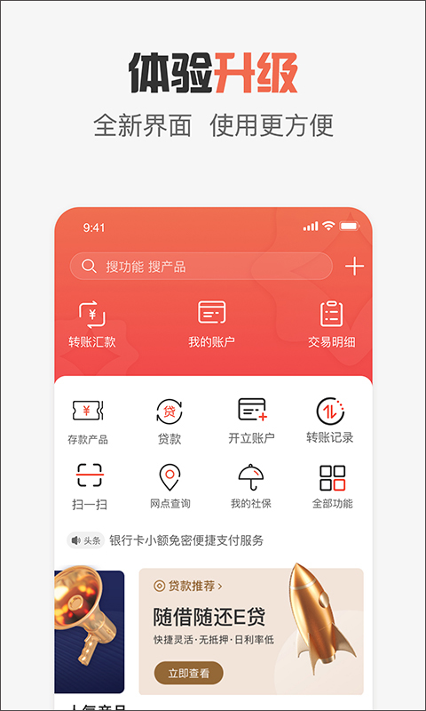 1、基础金融服务:账户管理、转账汇款、信用卡服务、网点导航