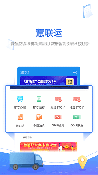 慧联运app最新版本是一款专为货运从业者打造的智能接单与综合服务平台,该应用整合了油卡优惠充值、ETC智能管理、信用消费等多元化功能,通过数字化手段为运输行业提供全流程解决方案。平台最具特色的高速通行服务支持全国9省通行费85折优惠,配合"先通行后付费"的白条服务,真正实现降本增效的运营目标。